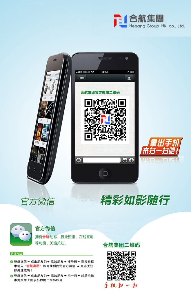 ● 本文《合航集團官方微信開通及合航集團二維碼上線啦》來自合航集團官網,歡迎轉載.● 鏈接地址:http://m.zbqtch.cnhttp://m.zbqtch.cn/1830.html
